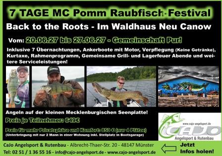 Eine Woche Raubfischangeln mit Event-CharakterUnsere MC Pomm Angltour "Back to the roots" ist ein ausgemachtes Gemeinschaftsevent mit hohem Unterhaltungsfaktor.