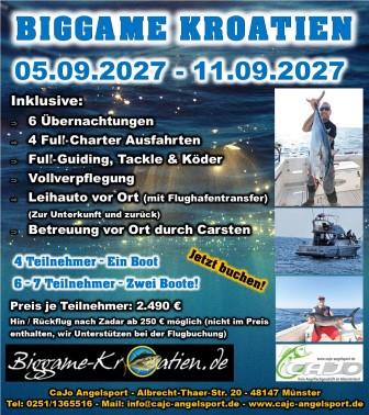 Mit unserem Partner Patrick Baier von www.biggame-kroatien.de erleben unsere Kunden Big Gamer Angeln vom Allerfeinsten! Betreut wird die Tour von Carsten, dem Inhaber von CaJo Angelsport.